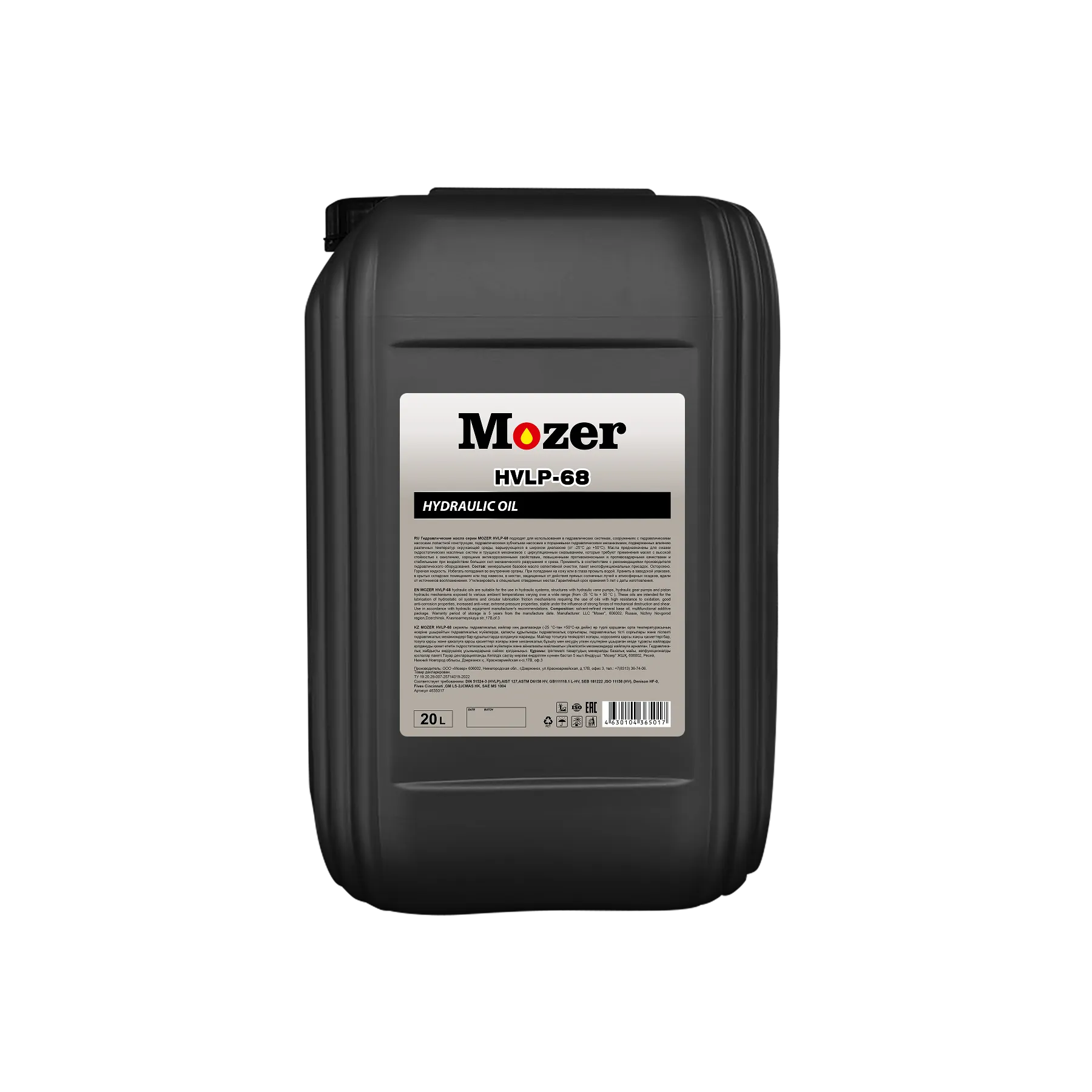 Масло MOZER HYDRAULIC HVLP 68 20л