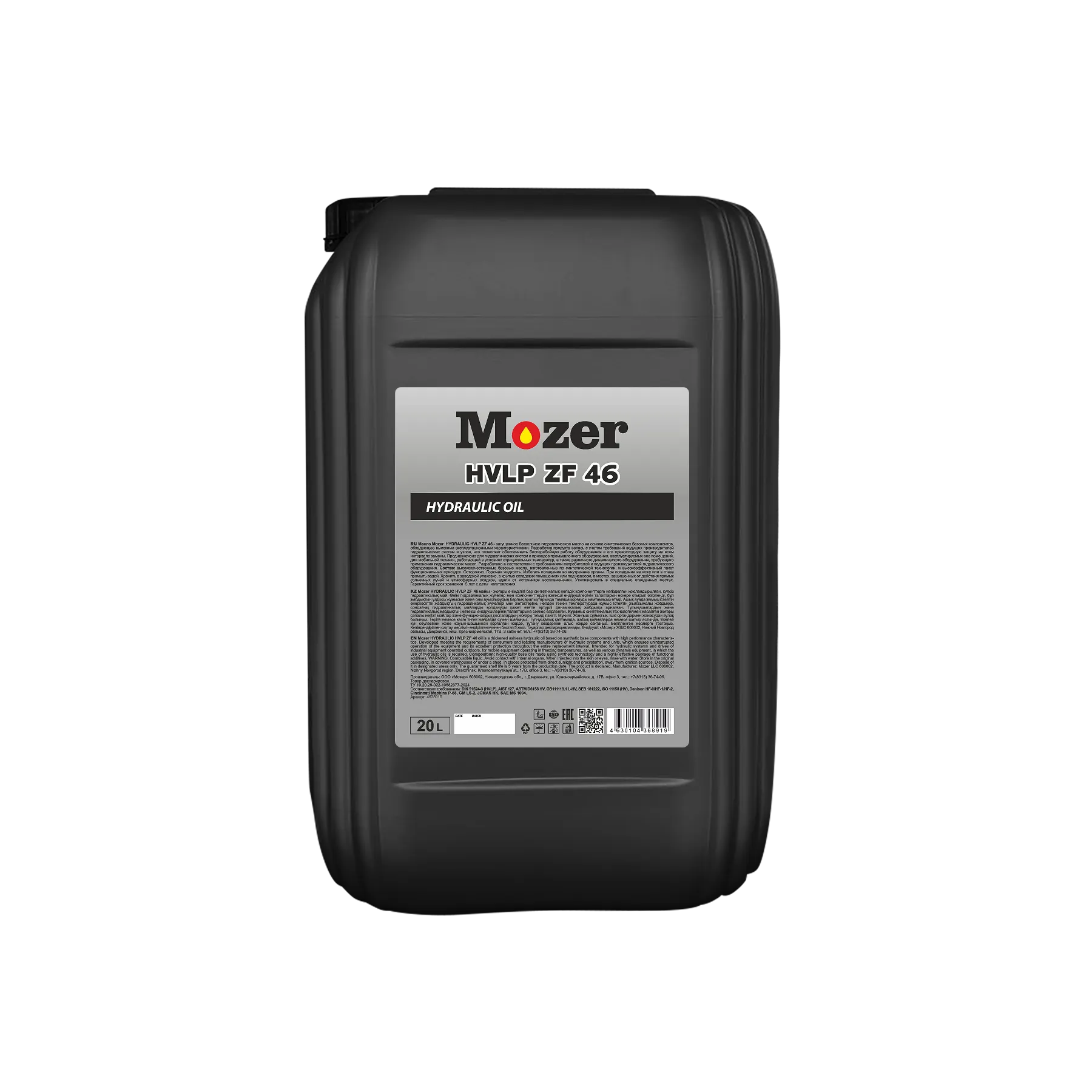 Масло MOZER HYDRAULIC HVLP ZF 46 20л