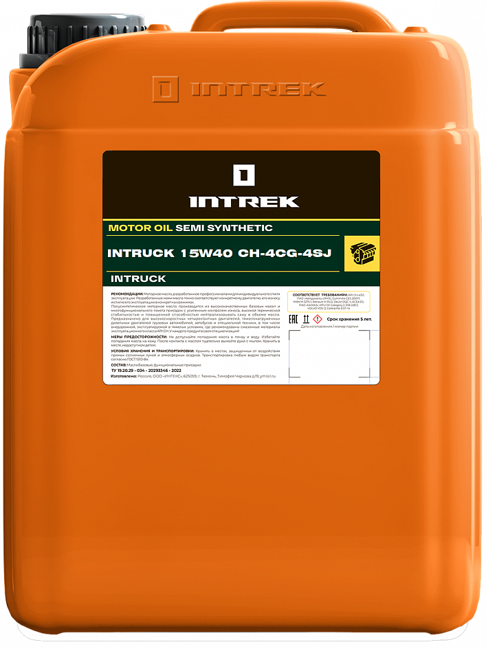 Масло моторное INTRUCK 15W-40 CH-4/CG-4/SJ - высококачественное всесезонное моторное масло на минеральной основе. Рекомендовано для эксплуатации высокофорсированных турбонаддувных бензиновых и дизельных двигателей легковых автомобилей, микроавтобусов и легких грузовиков.