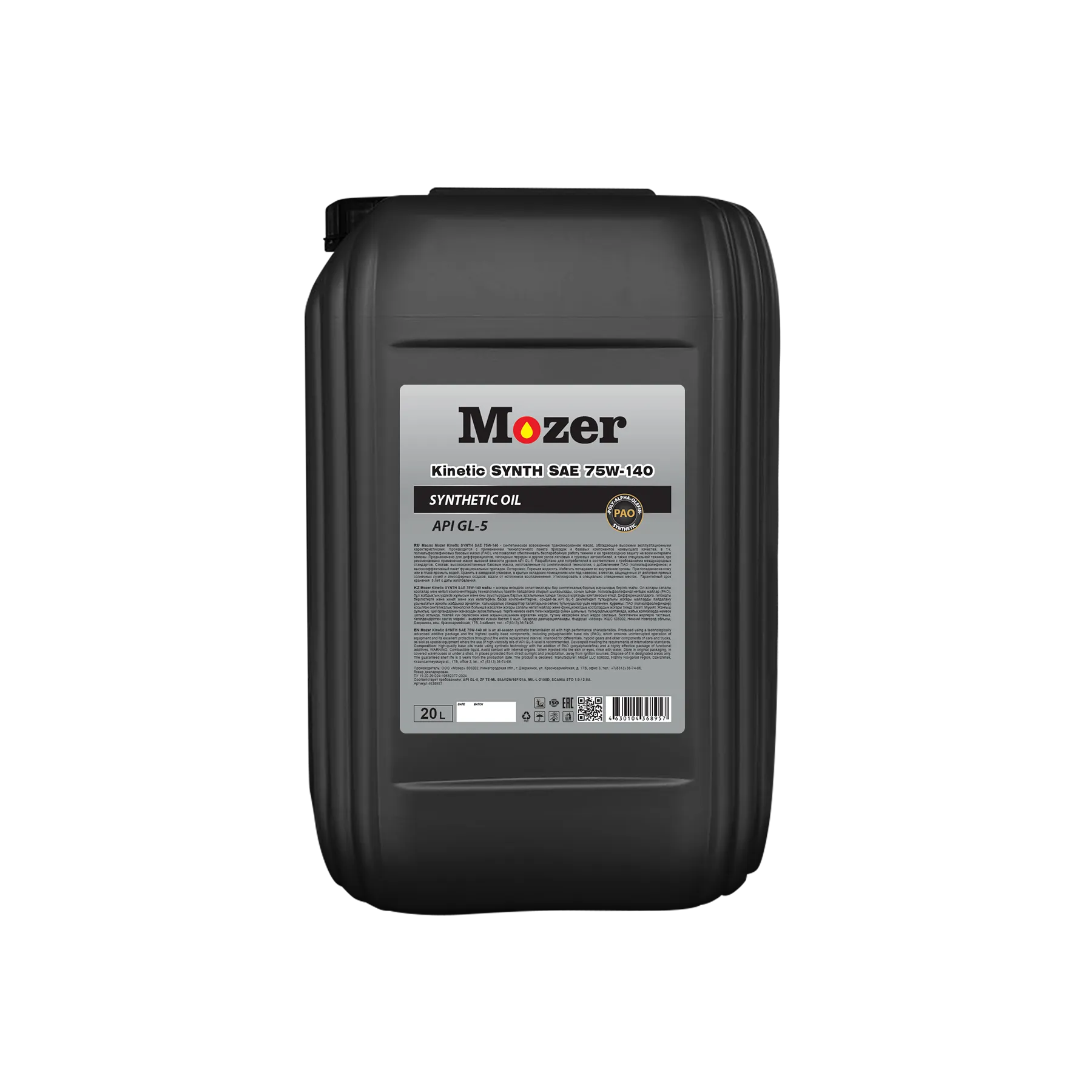 Масло MOZER KINETIC SYNTH 75w-140 GL-5 (PАО) 216,5л